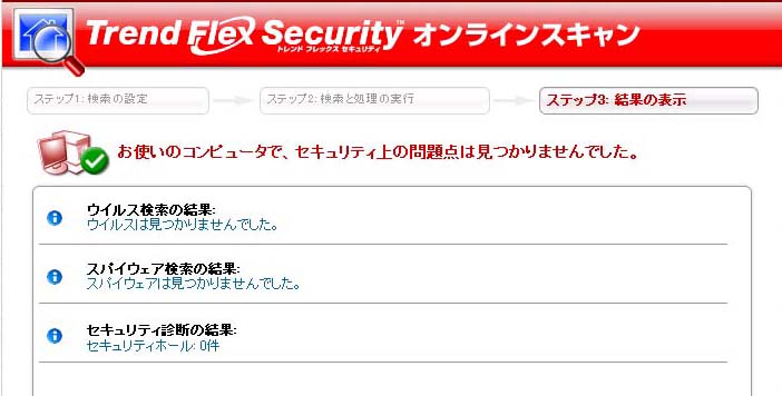 ?まずは感染の原因として自PCのウイルススキャン実施。 →ウィルスバスター、トレンドフレックスオンラインスキャン等、複数のチェックにて